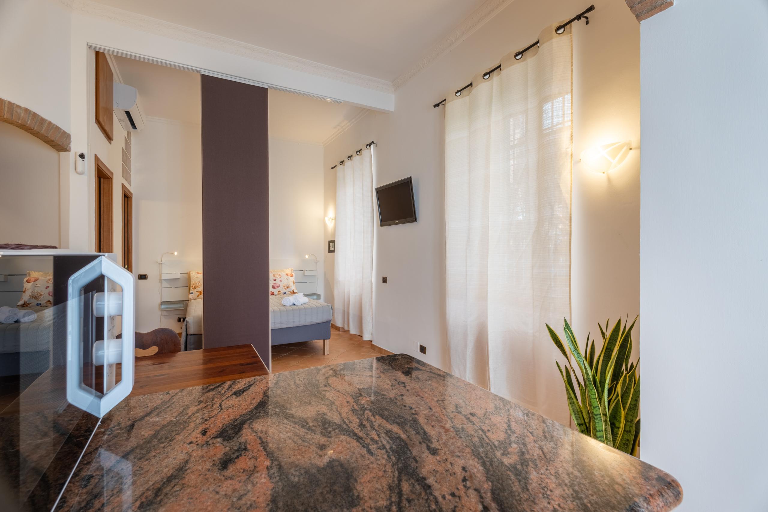 Cozy studio of 32 square meters, located just 850 meters from the train station for Rome and 50 meters in a line from the sea, in a very quiet and very central area. The apartment is located inside a small building vintage from 1930, equipped with equipped kitchen, air conditioning, mart TV, internet Wi-Fi and walk-in wardrobe. In immediate proximity you will find numerous bars, restaurants and supermarkets, all within a few steps on foot , perfect for a relaxing and comfortable stay.